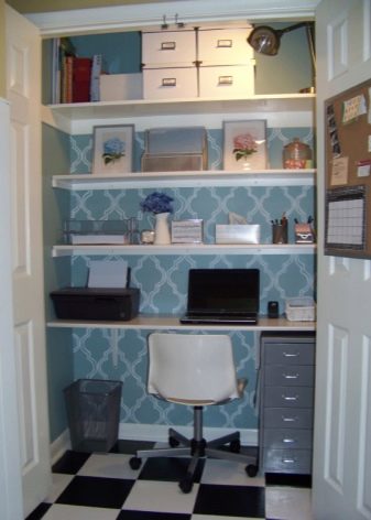 If the pantry is deep and narrow, it is subject to alteration. Often it is dark, there are no sockets for connecting lamps and equipment, as well as technology. In some cases it is difficult to adapt, in others to decorate and give the appearance of a study is easy.