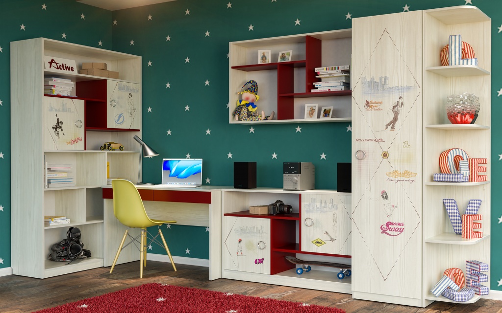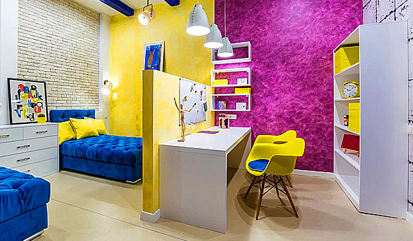 The workplace of an adult may also imply the use of a protective coating of this type for walls. It all depends on functional responsibilities and professional skills. The dominant color in interior design should be unobtrusive, pleasant, close to neutral. If you like dark tones, the contrast method will help create the optimal space.
