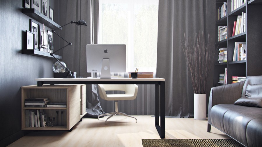 The workplace at home is often a small area. Therefore, the use of light colors in interior design is relevant. Due to this, it will be comfortable even for a person who does not like to be in an enclosed space. Materials for wall decoration should be selected taking into account such factors as the degree of marzimi. The desired degree of stability of the coating is determined by the risk of damage.