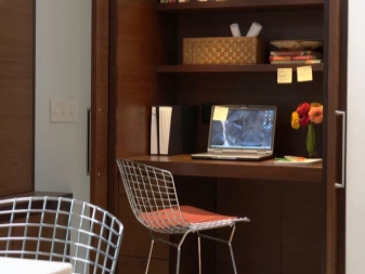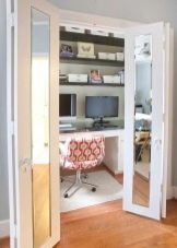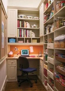 If space permits, then the pantry can make an excellent workplace. This is especially true when doing homework or study. This place can also come to taste lovers to read in silence. Compact arrangement of books on the shelves will allow you to create an amateur library. Proper placement of furniture will give the opportunity to enjoy the pleasant atmosphere of home comfort.