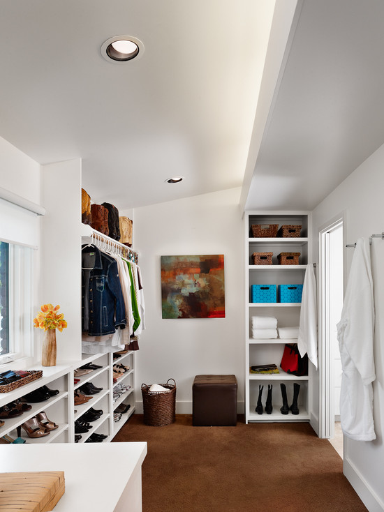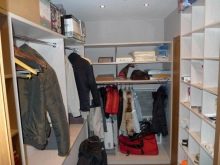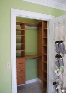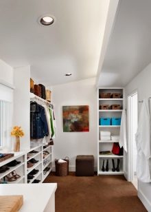 Storeroom or part thereof can be equipped with a wardrobe. To do this, make special hangers, put shoe boxes. Shoes better placed on the lower shelves. In such a room often leave old things that are rarely worn.