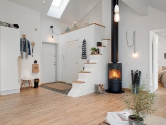 In addition to the competent use of each centimeter of internal space, it is necessary to pay attention to its design, color palette. The main task is to maintain a cozy homely atmosphere reigning throughout the house.