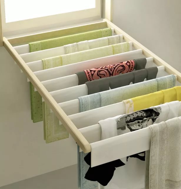 When using the pantry as a laundry, much attention is paid to the moisture resistance of the walls and the floor. For flooring and walls it is better to use moisture-resistant tiles.Colors usually have a light shade, such as beige or white. In order to save space for lighting, it is better to use LED lights. If the door is not sliding, then you can hang a mirror on it.