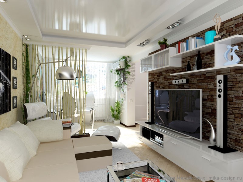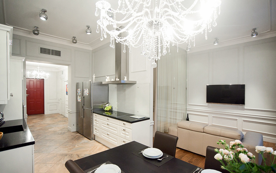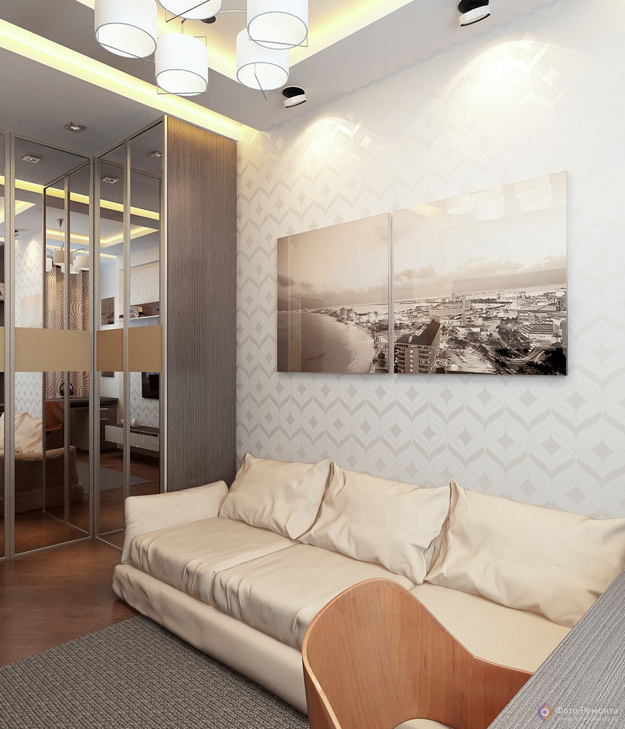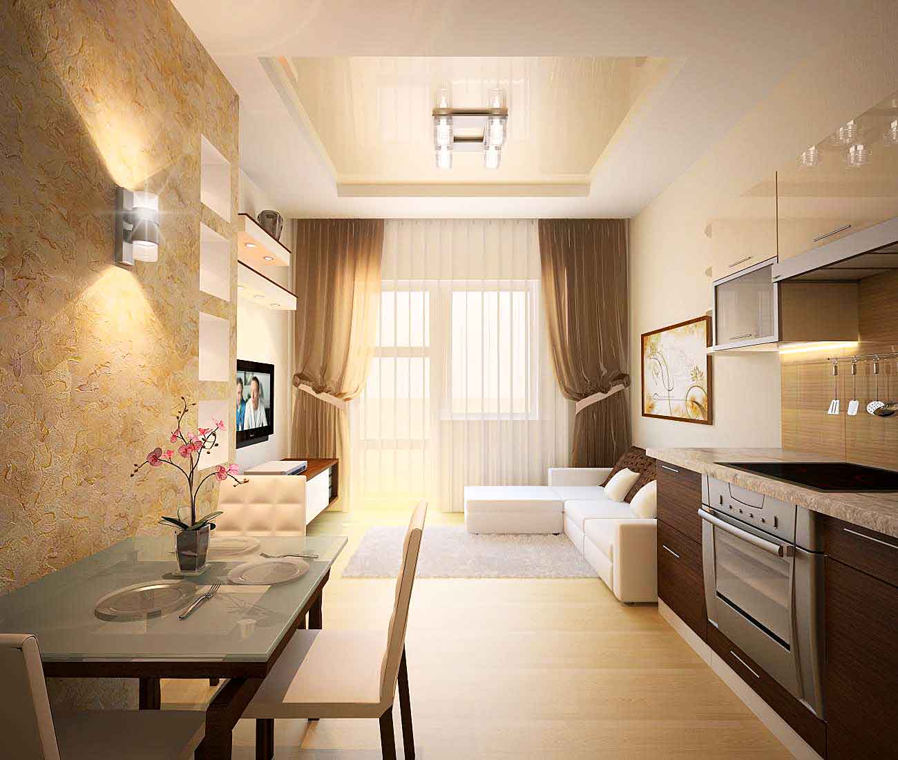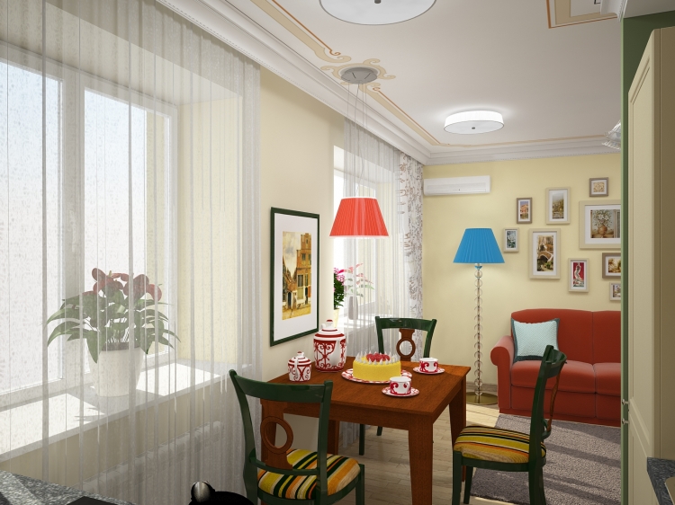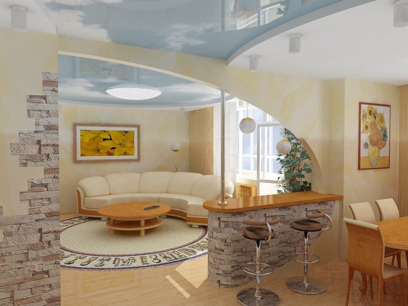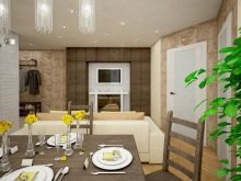 - A good option is to connect the room to the kitchen, making an opening in the wall in the form of a beautiful arch. It is very convenient and functional. In some cases, you can even tear down the wall, resulting in a studio apartment. It is better to do zoning using color to separate the kitchen from the living room.