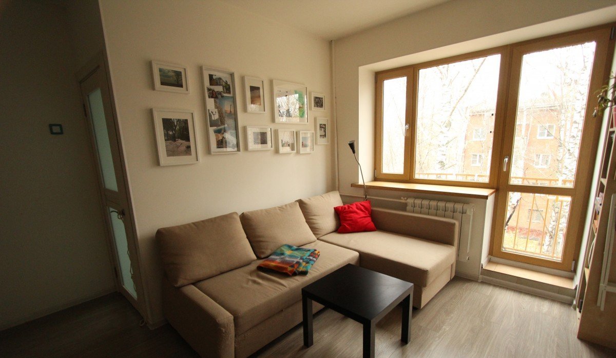 - The apartment, “vest” (in which rooms are located on opposite sides of the entrance) provides many opportunities for redevelopment. Most often the living room is combined with a kitchen, or two small rooms are made from one large room.