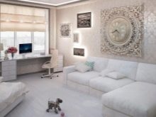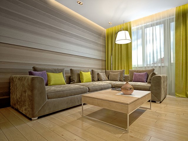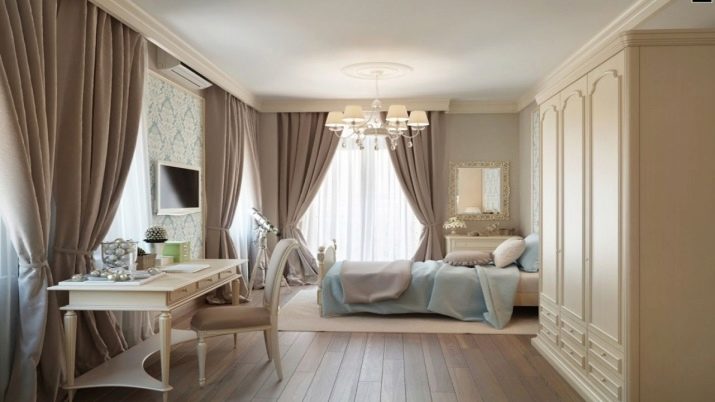 Floors can be decorated with light carpet, which will give your room a classic look. Coating with large pile is also acceptable.