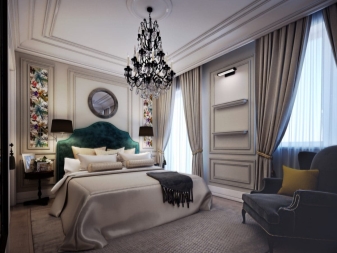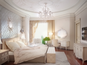 - Especially beautiful is the bedroom with a large window. This adds extra light to the room, making the interior visually wider. Fragile objects of crystal decoration will shimmer and fascinate the owners of such chambers. And adding dark objects to the room, the bedroom will seem more restrained, but not worse at all.