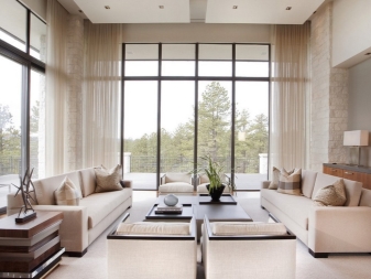 But they are especially good in directions. eco and loft. They allow you to decorate the room with luxurious curtains, make it possible to use textiles in all sorts of variations. But it is important to remember that for large windows, textiles are usually purchased to order, since this size is not standard. But in this situation, on the contrary, you can win by creating an exclusive window design.
