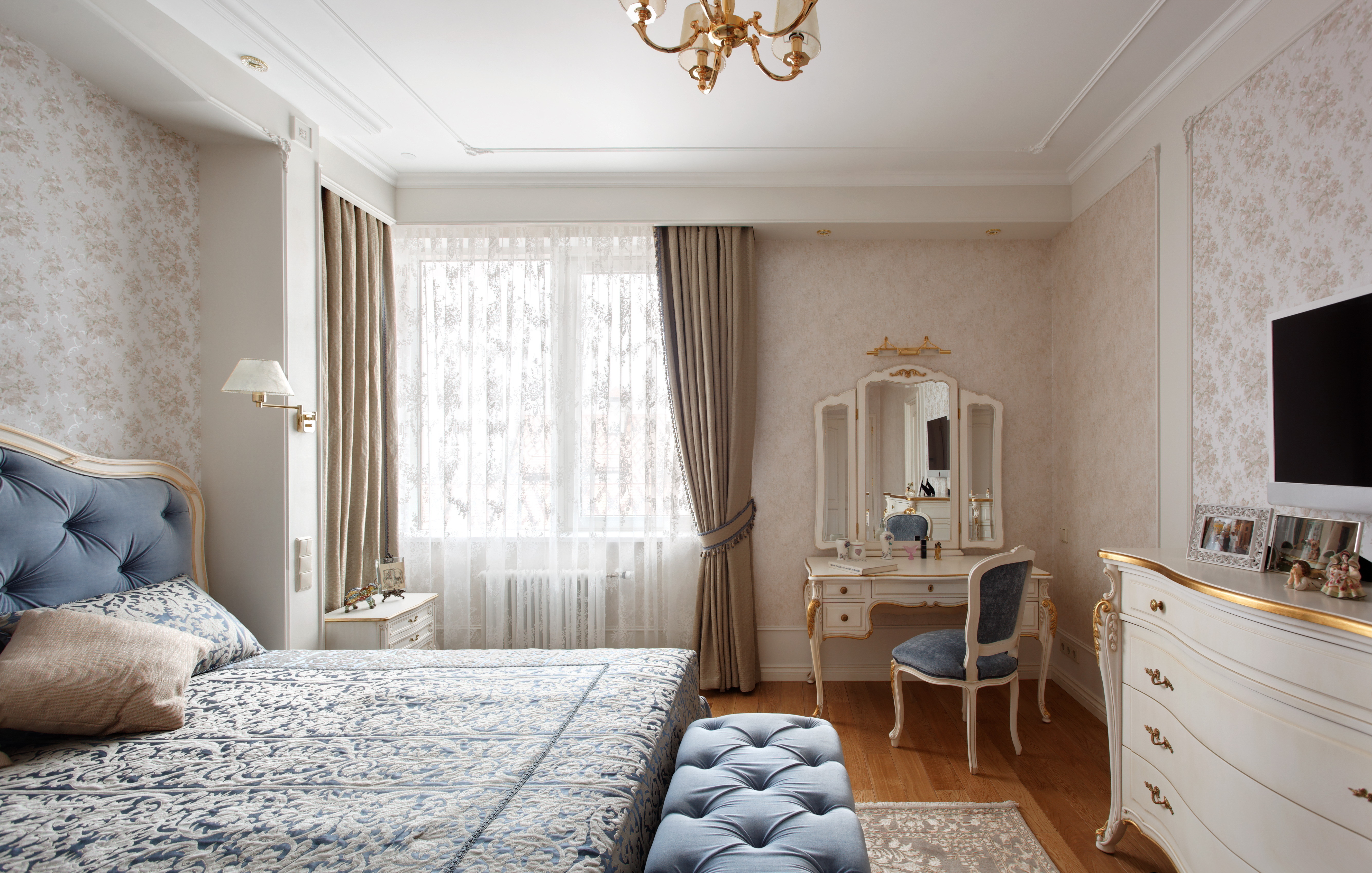 This color has a positive effect on the nervous system and gives the room a luxurious look, similar to the royal chambers.