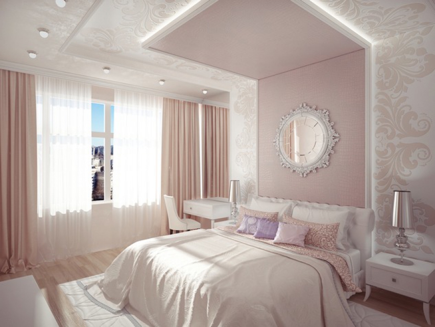 For bedrooms, light pink hues are considered ideal. It may be a creamy pink shade, white-purple, smoky rose. Such shades give the room a certain charm, giving the hostess peace and tranquility.