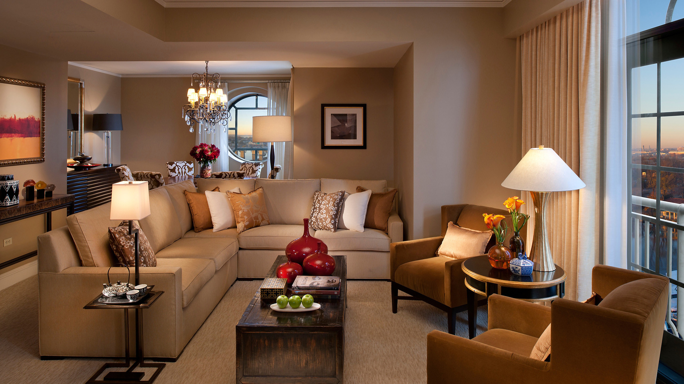 A bright spot of the whole interior is the yellow canvas on the wall, which makes such a low-key room a little more fun, without detracting from a worthy luxury.