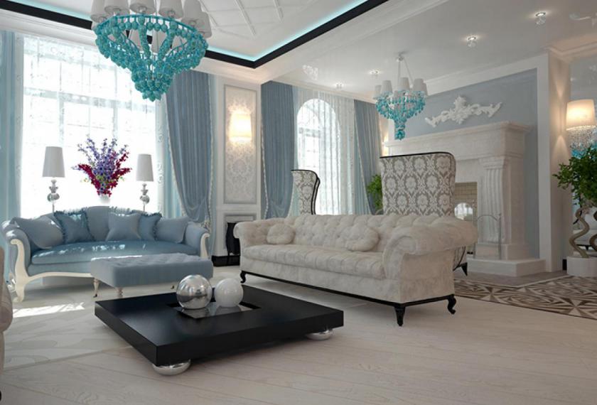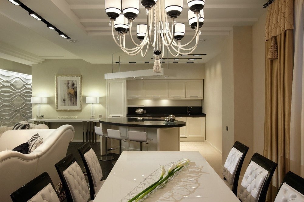 - In the interior of the Art Deco style, as a rule, the leading color is white. Such an interior can be diluted with a classic palette by adding a black color to the room. It can be a black poster or a black table surrounded by white sofas.
