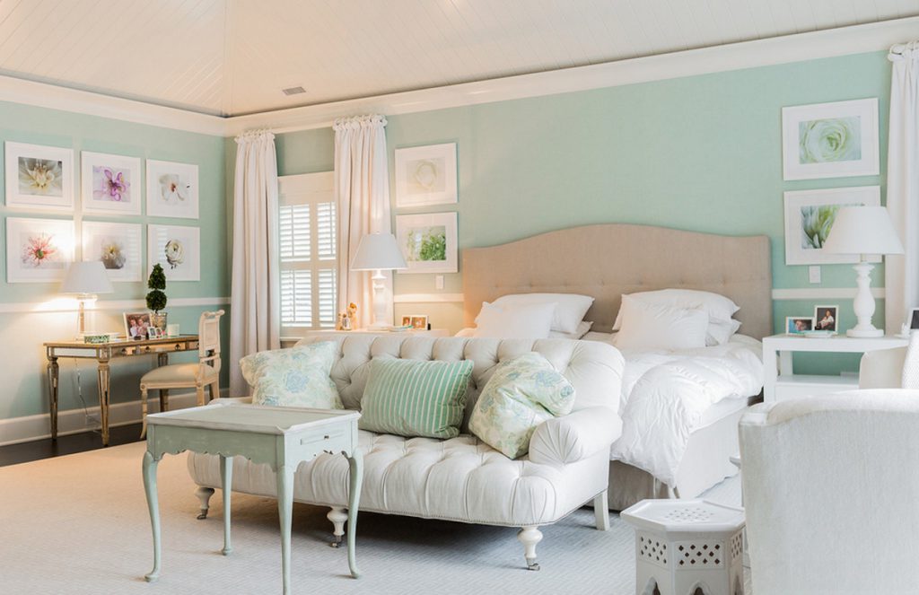 - The interior of the bedroom in pearl colors looks quite noble, adds room freshness due to its coldness.With this color you can combine the light shade of sea wave or mint.