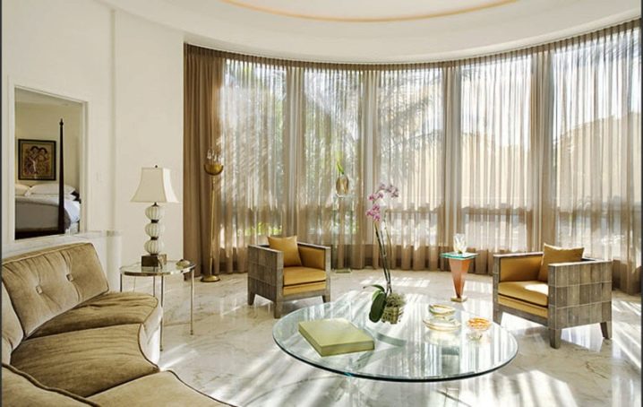 - Curtains of velvet, brocade and other heavy fabrics will add grandeur, royal chic and a certain amount of pomp. If you want to achieve just such an effect, you can choose curtains that come in several layers;