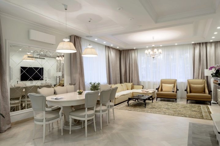 The so-called neoclassical is quite popular now. This is a style in the interior, whose name speaks for itself.Neoclassicism, in contrast to equally popular styles such as high-tech or loft, is characterized by the introduction of modern furniture, decor and textiles into the room space, however it adheres to the main canons of the classics.
