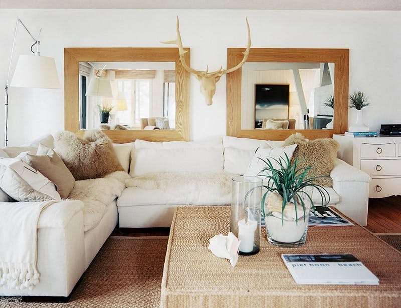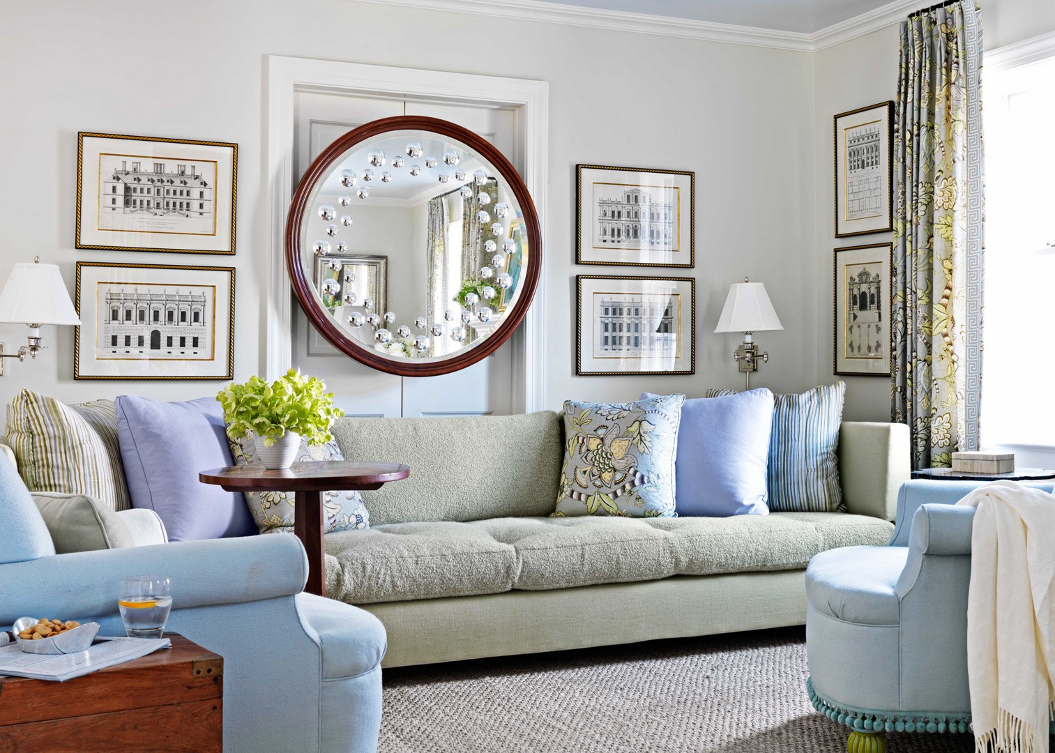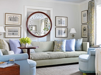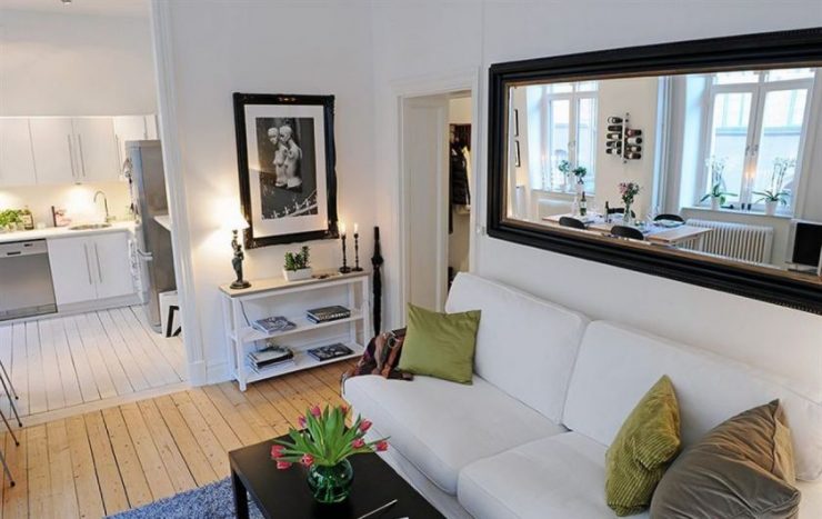 - If the sofa in the living room is facing the window, a few small rectangular mirrors above the sofa will help to visually enlarge the room twice.