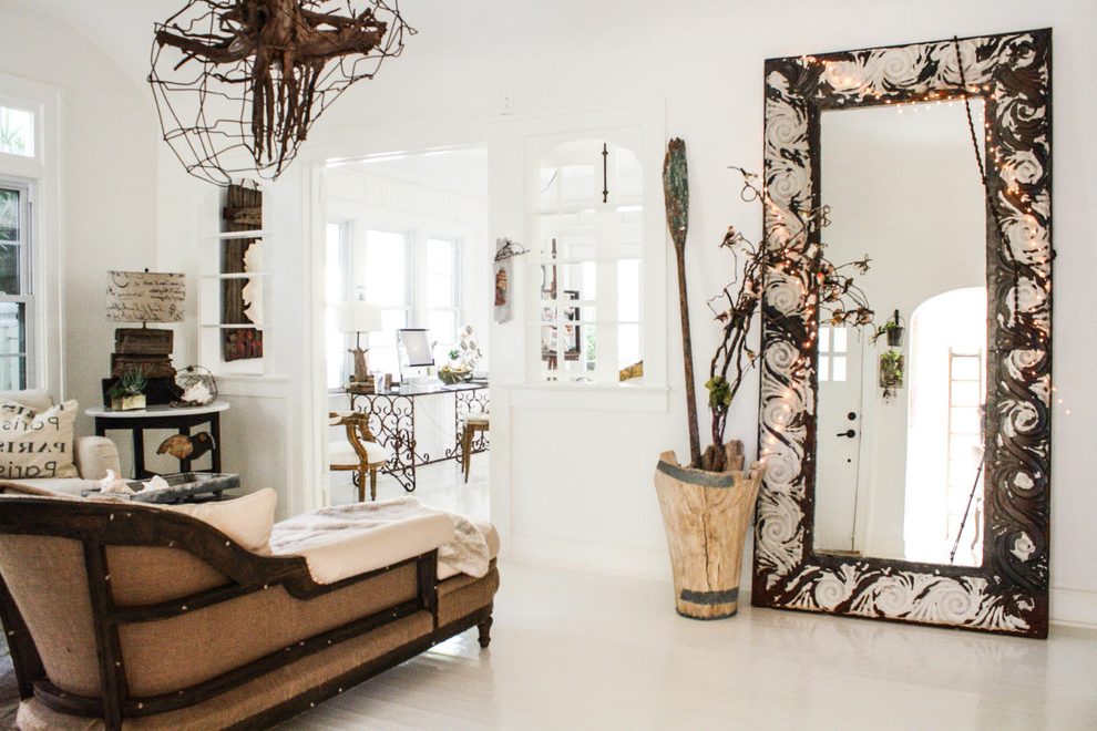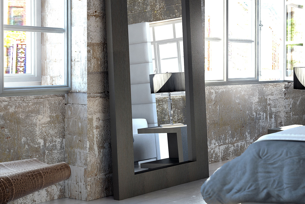 - Loft. A good option would be designer large mirrors with a frame of natural materials. It can be rough wood or even metal. Because of the large weight of the frame, such products are often placed on the floor against the wall.
