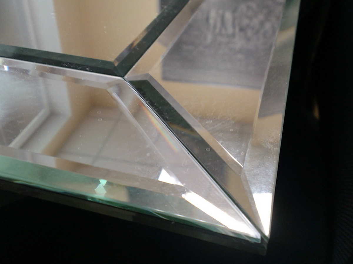 This type of mirror is obtained by using decorative surface treatment: the edge is removed from the edges of the mirror at an angle of 5 to 40 mm. The finished product is distinguished by the elegance of lines and bulk.