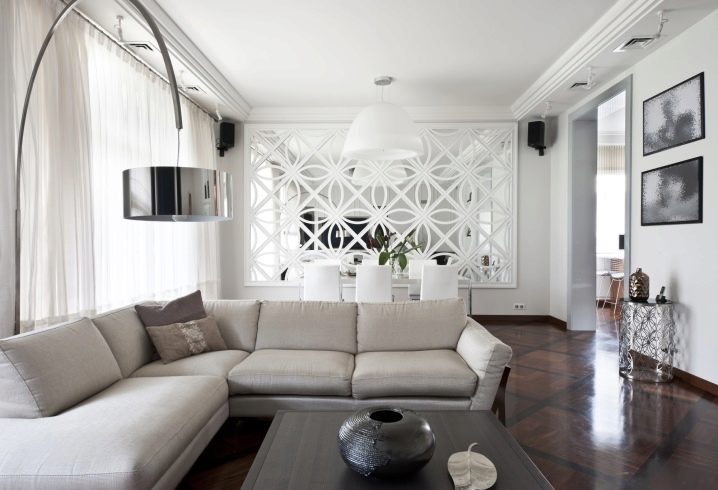If you plan to use a mirror canvas to increase the living room space, do not forget that such a product is an element of decor.It is important not only to correctly install the reflective surface, but also to choose the appropriate model for the interior design. Consider some recommendations for different styles: