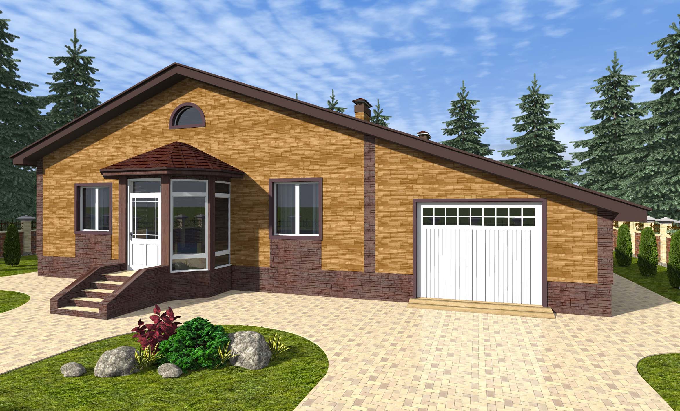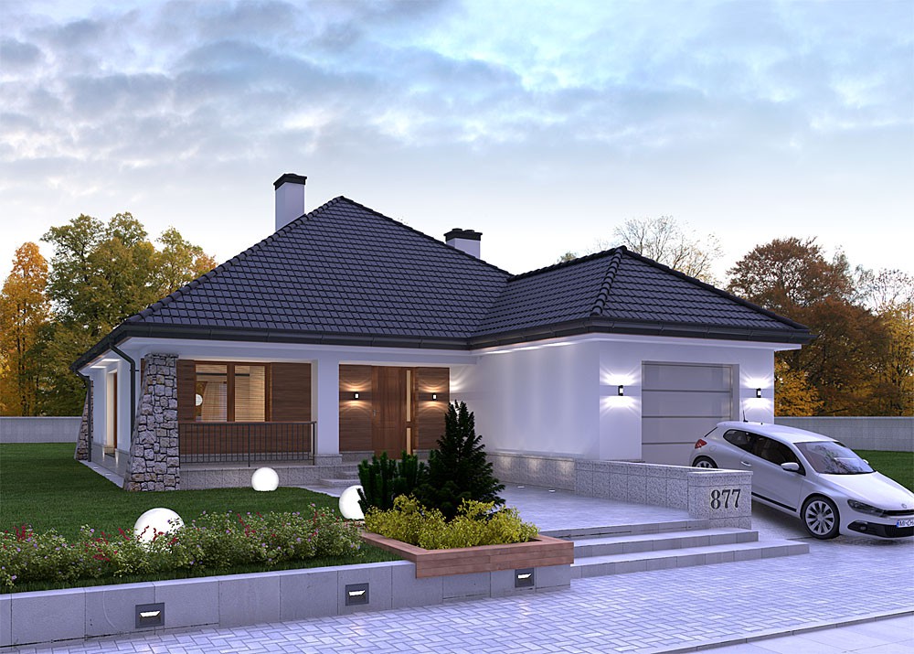 One-story houses with a garage: projects and types of structures