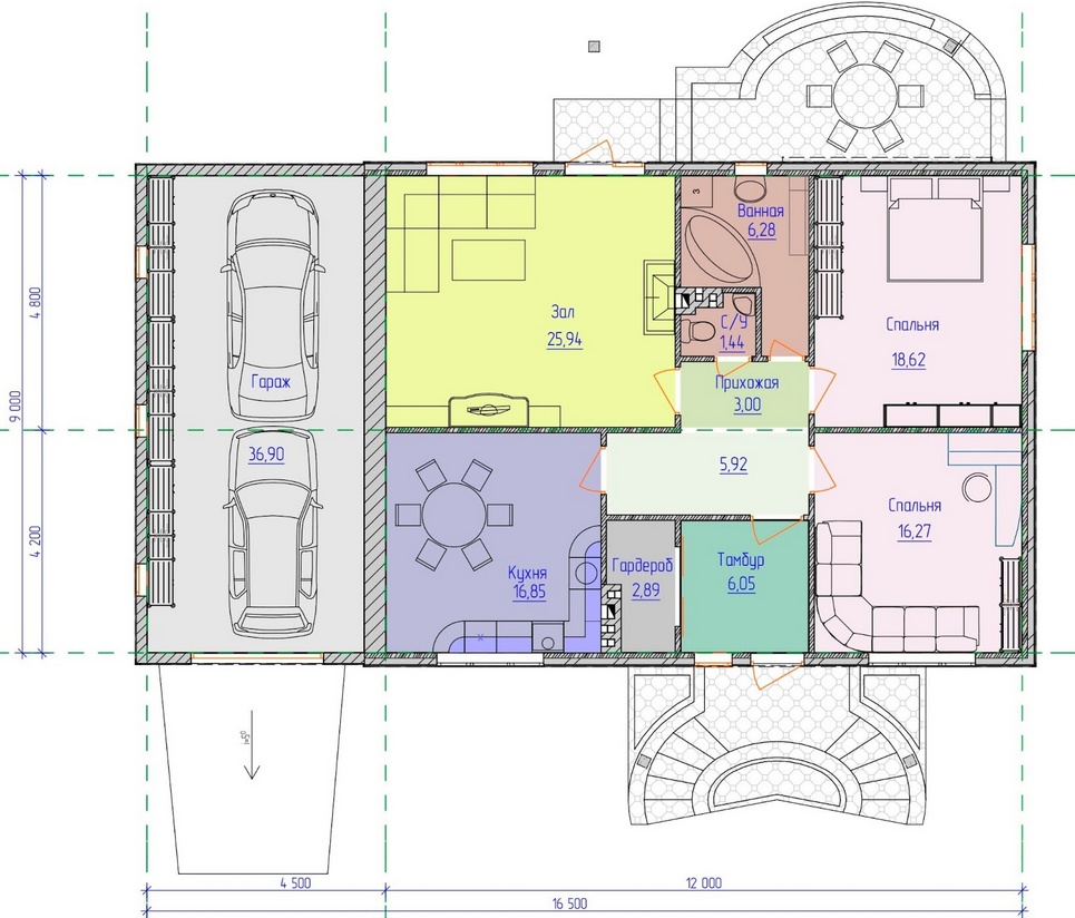 - In addition to the garage, you can arrange in the house a bath, workshop, terrace and even a gym or a billiard room.