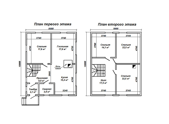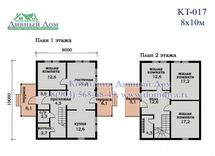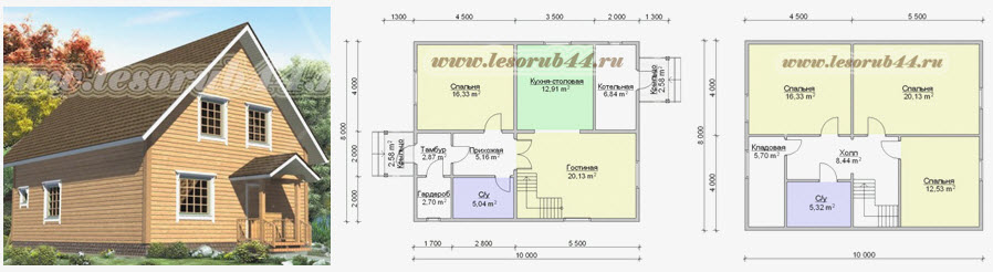 Houses 8 by 10 m are mainly intended for families of 2-5 people. That is the number of tenants feel most comfortable and pleasant in such buildings.