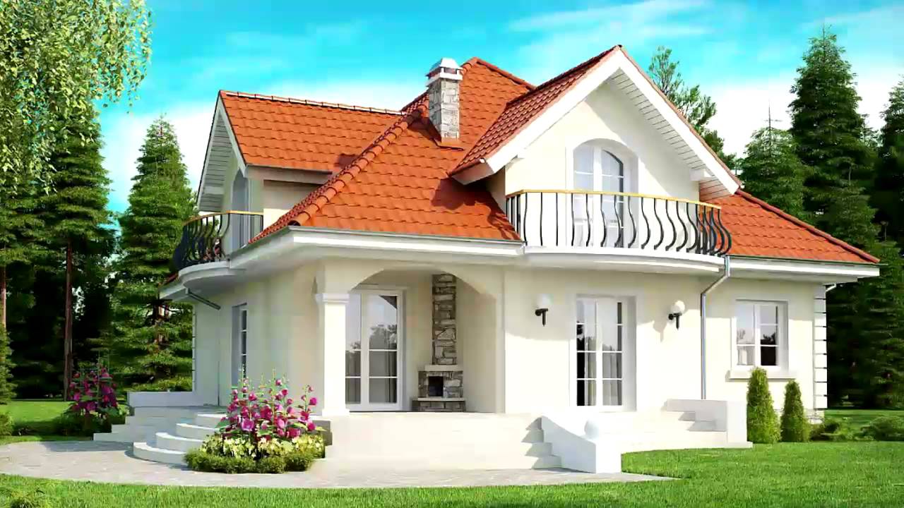 In this case, the presented building is brick, while the walls are completely snow white. In addition, partitions in windows and doors have exactly the same color. Attic parts of the building are complemented by curved balcony areas. The composition is completed by a light brown tile and an exquisite stone chimney pipe.