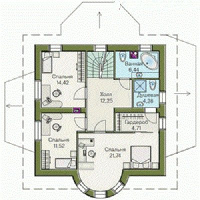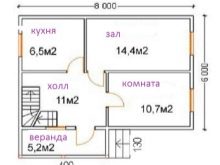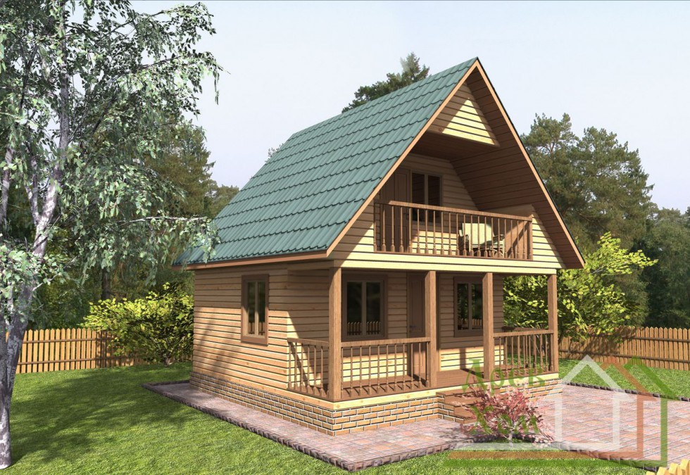Projects of wooden buildings with an attic and a veranda indicate how you can efficiently use the useful space of the building. Even in the drawings you can see how square meters are used compactly and intelligently.