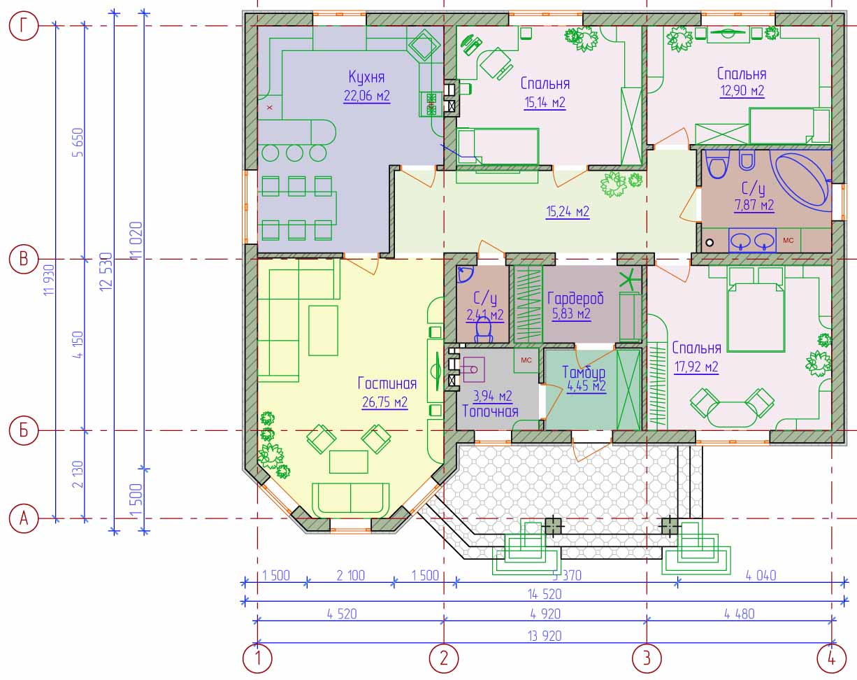 Such projects help to save square meters of land, in the vacated space it is also possible to place a sauna, a swimming pool, and various arbors.
