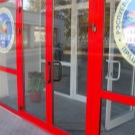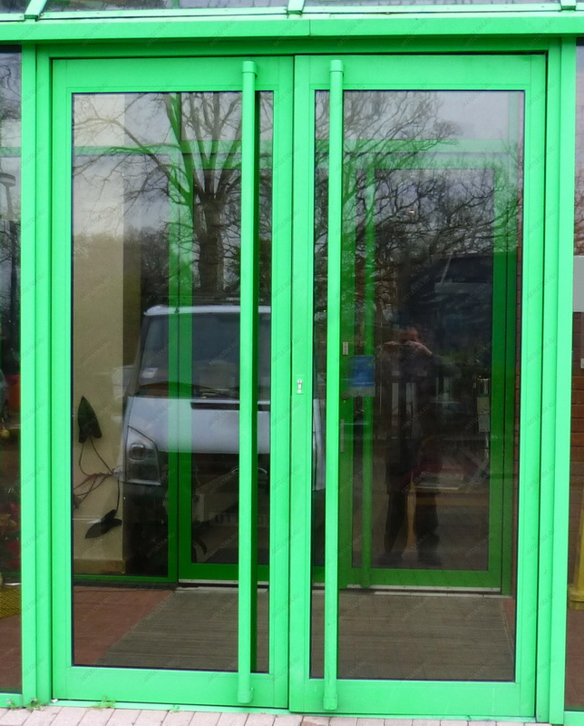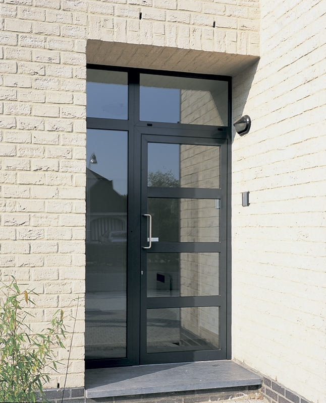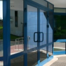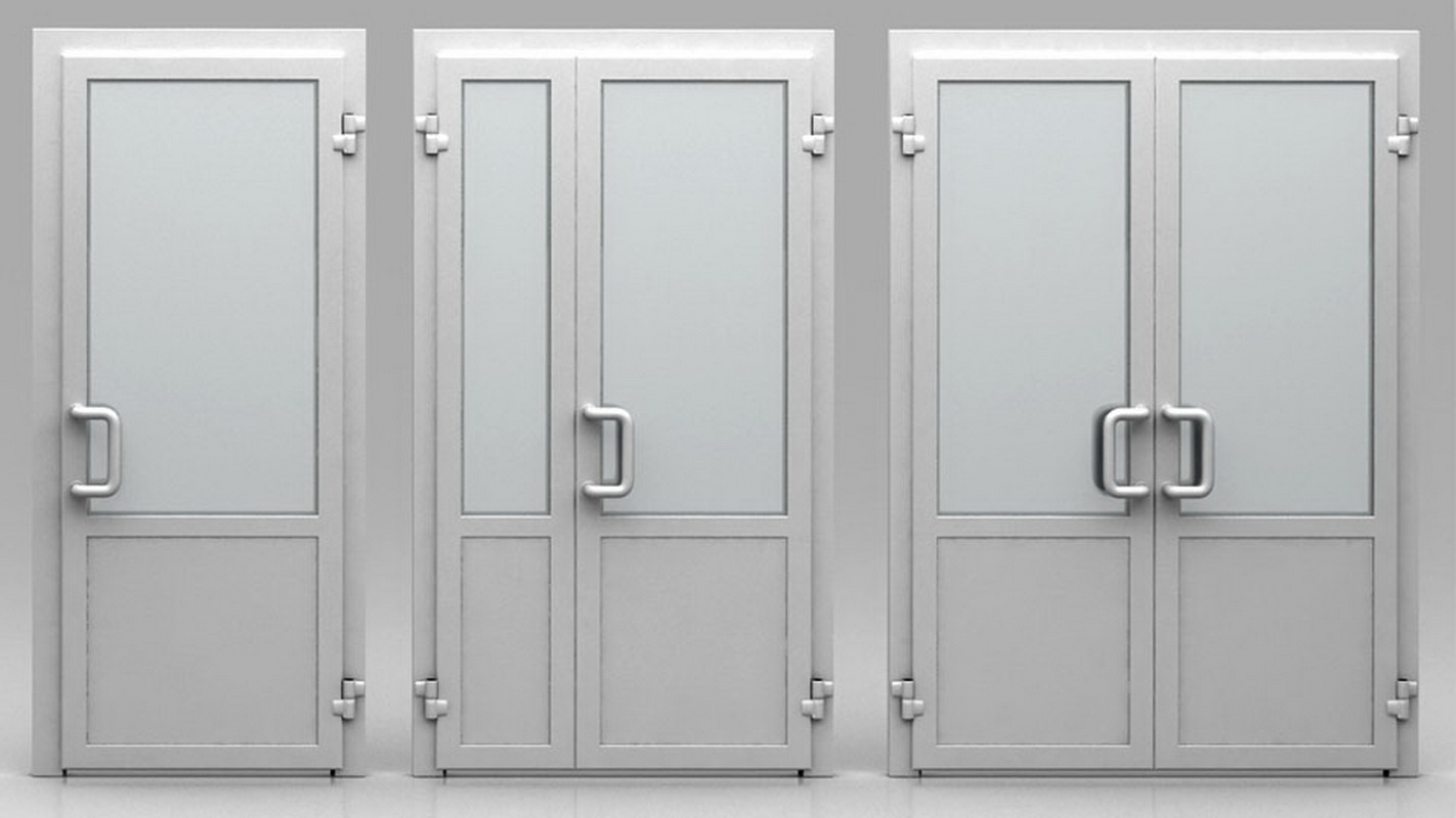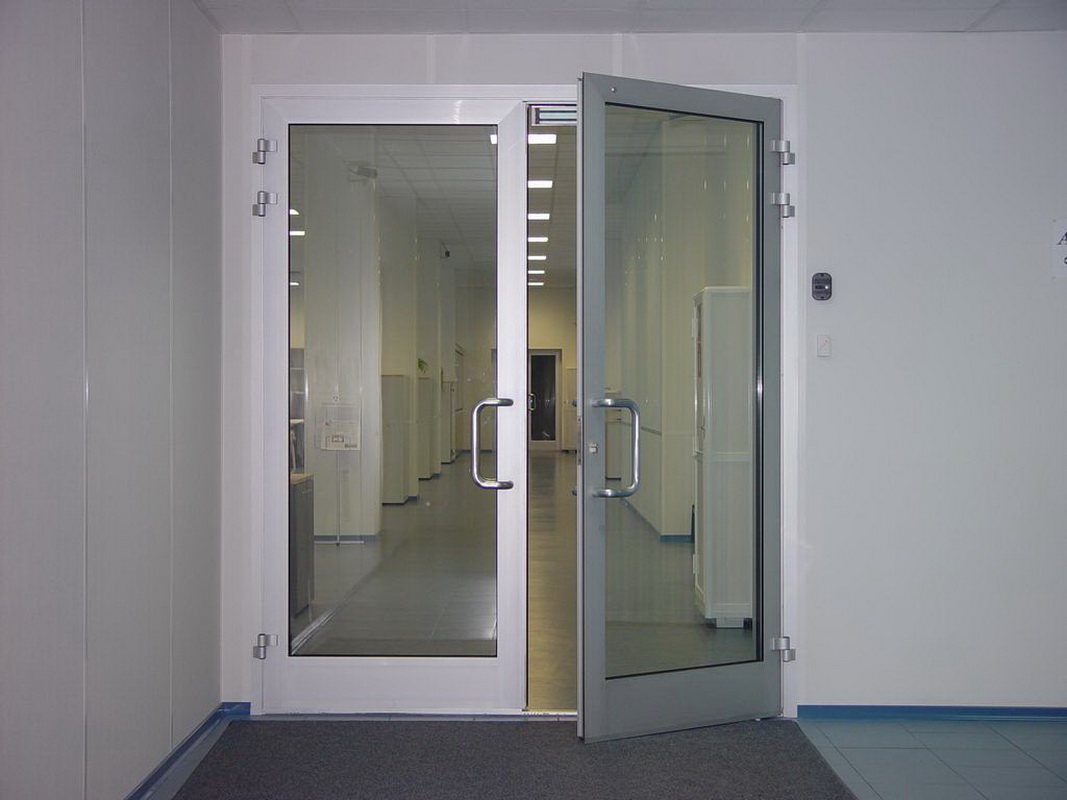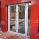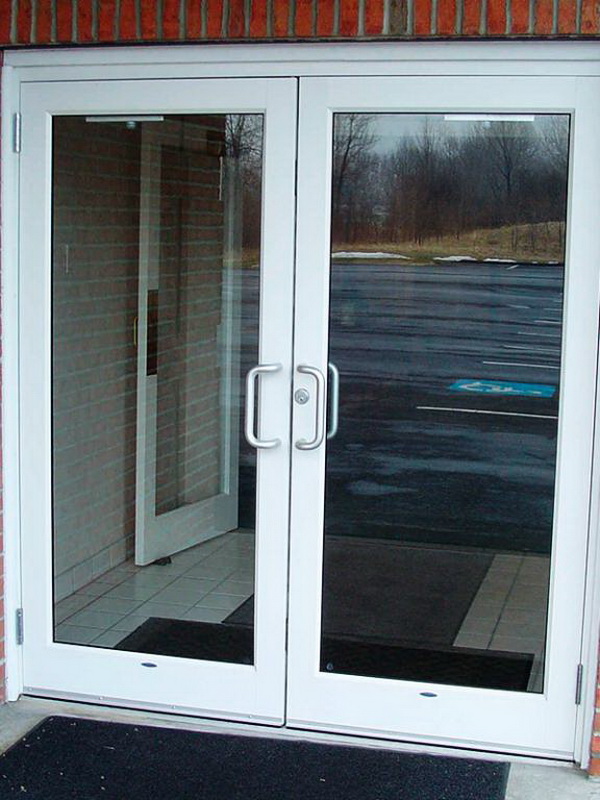 Double-leaf aluminum doors, as well as single-leaf, are subspecies of pendulum. They are in demand where there is not just a large flow of people, but it also changes its direction. The handle and the press set are included in the standard set of the aluminum office door; during installation it is necessary to take care of the seal around the entire contour.