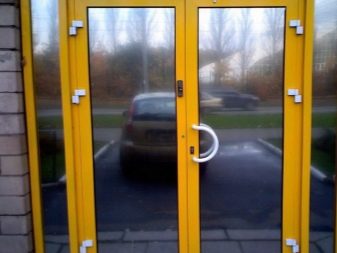 The profile elements of the doors installed in the vestibule can be either “warm” or “cold”. As stated by the state standard - on aluminum door blocks, structural elements and individual fasteners should be made of carbon steel, covered with cadmium and zinc alloys.Make sure that the door with transparent inserts used tempered glass or other material that does not give dangerous fragments.