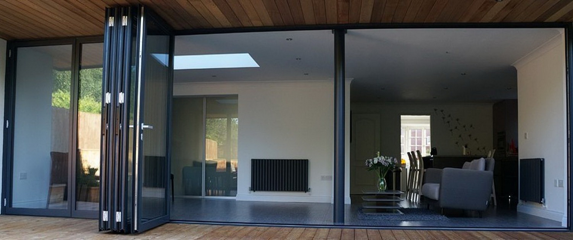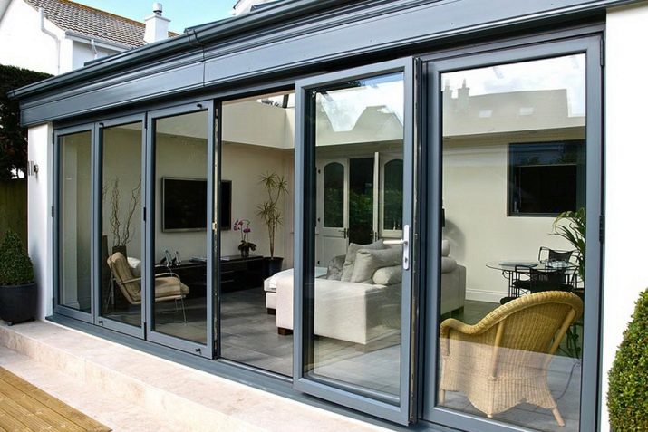 - folding doors (“accordion”) - such a solution is well compatible with both cold and warm groups, but is almost always placed inside the building (in the office, kitchen or bedroom);