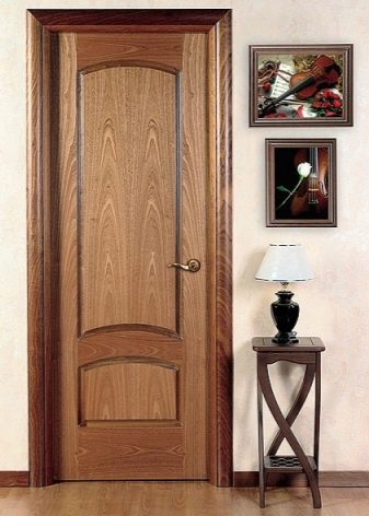 Products of the first type are made from elite veneer wood (mahogany, beech, oak), using patented technology. Due to this, the service life of such doors increases, and they become more resistant to temperature extremes.