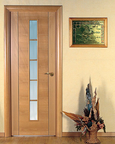 Veneer doors are models. Carmen, Maestro and Tango. Doors of the "Tango" series differ in the way of finishing. Finishing is provided for this series with the help of various veneers and stained glass compositions. At the same time stained glass is installed using wooden frames.