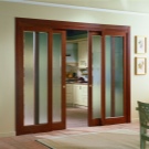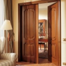 - Opening method. This group includes swing, folding and sliding systems. They differ not only in appearance, but also in technical equipment. The simplest and most popular products from the array are swinging canvases. It should also be noted pendulum systems.They are very similar to swing systems, but can already be opened in any direction. In everyday life are quite rare, as they are not very practical.