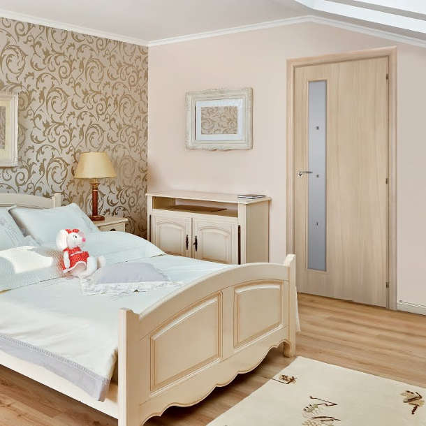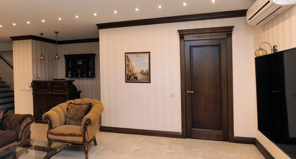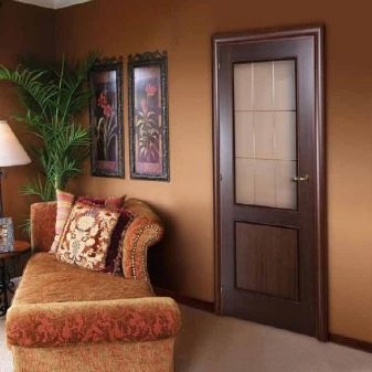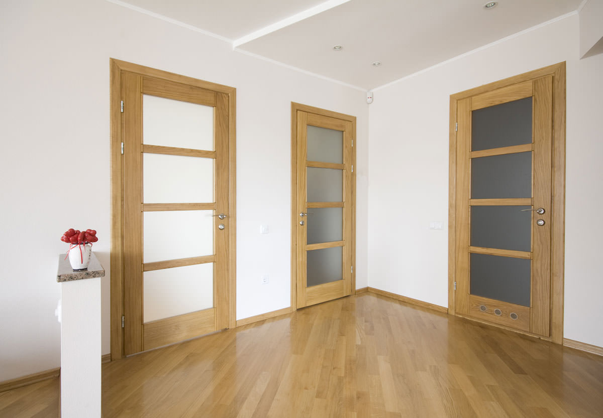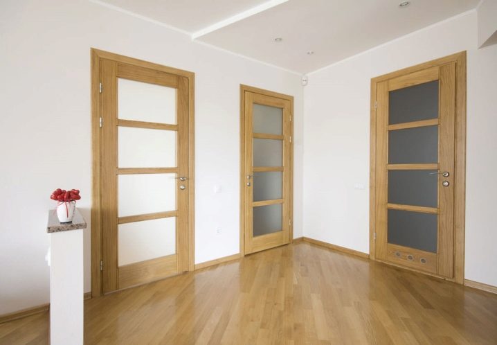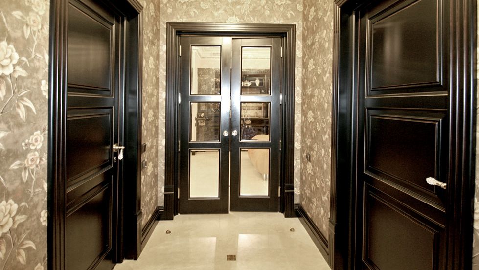 Interior doors from the array, no matter how many were in a house or apartment, with or without windows, must be of the same type of wood and performed in the same style and the same height. This is an important design rule.