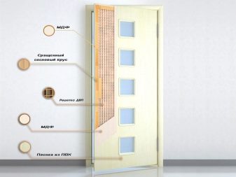 The next important component is the filler. Basically, for these purposes, corrugated cardboard or polyurethane is used. In cheap models, manufacturers replace these options with conventional foam, which is a blunder. Also, to create laminated products, MDF panels are used, which are fixed on the frame when assembling the door. The basis of this material is waste wood production in the form of crumbs. It is pressed under conditions of high temperature, and interconnected with an adhesive.