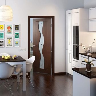 - Particular attention should be paid to laminated doors. They may have blind inserts or glass elements. It is worth noting that the second options are used not only as interior design. Balcony doors with glass inserts fit perfectly in a classic or modern interior.