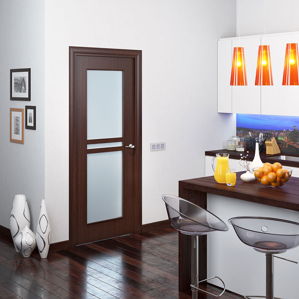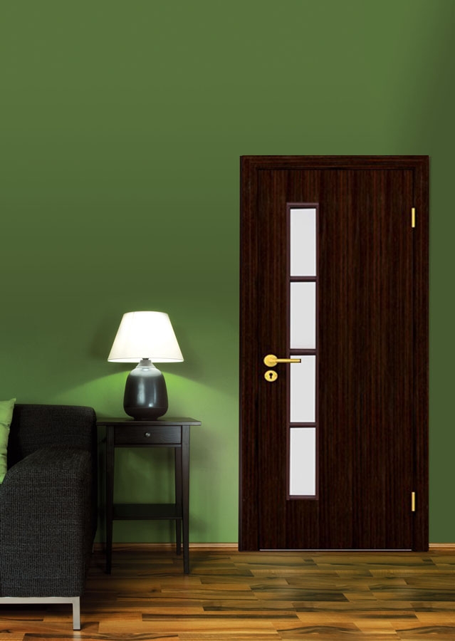 For example, a modern interior can be supplemented with a laminated door in cool colors.An excellent choice for a calm and concise design will be a model that has horizontal glass inserts in the base. The option in a bright shade will ideally fit into a non-standard and courageous interior. So, for a room in the popular boho style, you can use the model in light green, mint and soft yellow color.