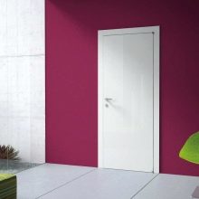 On any monophonic wall, a white construction will look advantageous. Most often white doors are combined with the ceiling of the same color.