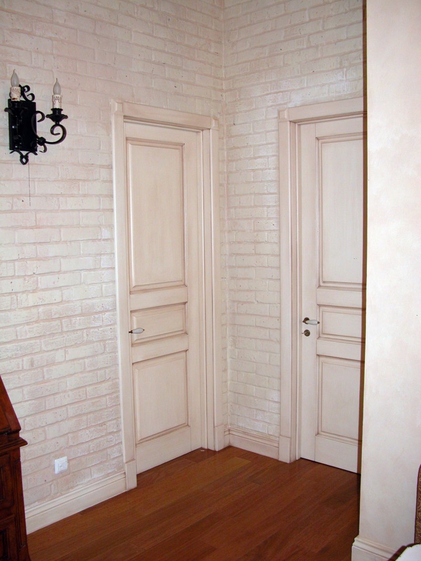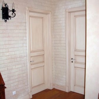 - Solid wood - elite material, expensive, but very pleasant to the eye and to the touch. Naturally, preserving its structure and physical properties. Bleached or painted wood as a door looks win-win in any style.