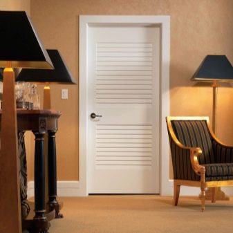 - Deaf - not to be confused with smooth ones. These doors do not have light-transmitting elements, that is, the light from one room does not penetrate into the other through a closed door. There are many options for such paintings. Drawings, linings, grooves - all these elements can emphasize originality.