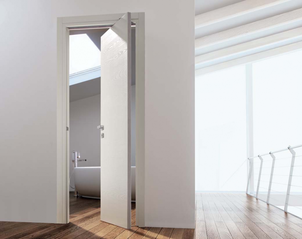 - Swinging - standard door opening to one of the sides. It should be borne in mind that with this method the web moves along the axis. The features of such doors include the ability to install on hidden hinges, which allows to level the canvas with the wall surface, making it almost invisible.