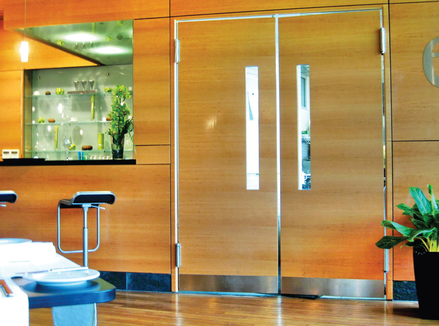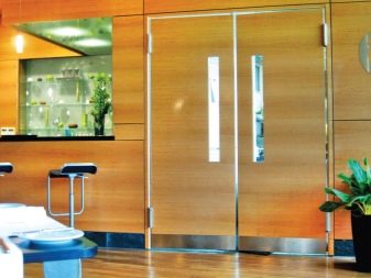 - Pendulum doorsthat can open in both directions: in the inside of the room, and out. Most often they are placed in office or commercial premises, which have a significant supply of space necessary for the free running of such structures.