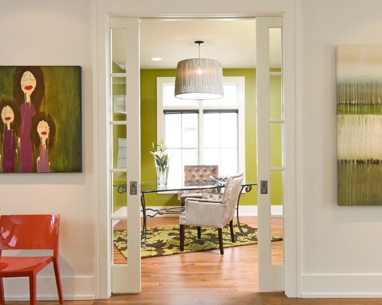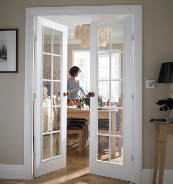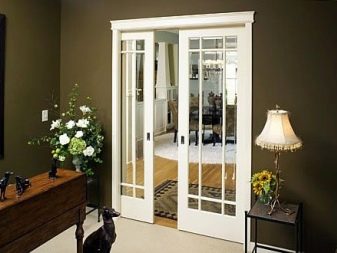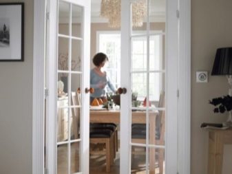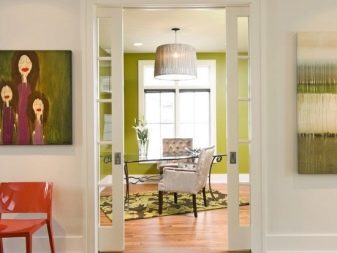 Double doors are used in various rooms, most often it is the so-called "front" doors, designed to enter the living room. Another application is their use as an interior partition.Such zoning of the room introduces a certain elegance and creates functional advantages, since it allows to open only one of the partitions for daily use.