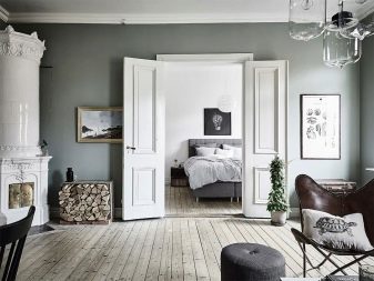 An interesting nuance is the fact that the door leaf usually demarcates the two rooms and must “fit” into the interior of both. The classic option in this case is the combination of the color of the doors and the floor covering.