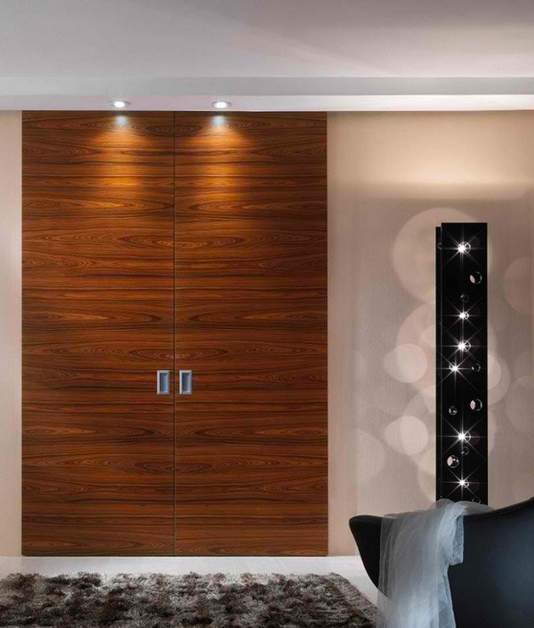 Sometimes the doors of glass are light panels, in which the built-in LED lights mounted at the manufacturing stage create a special attraction. This light turns the door into a work of art that adorns the room and amazes the guests.