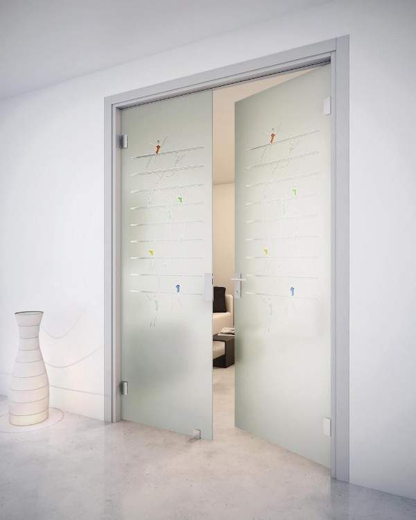 In the case where the owner of the premises wants to implement zoning without loss of natural light, you can use a glass door structure made of impact-resistant triplex or stained glass.
