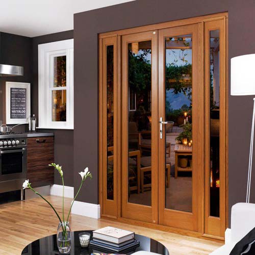Often they are combined by installing a one-and-a-half set in a large doorway: a compact door and a small hinged door.