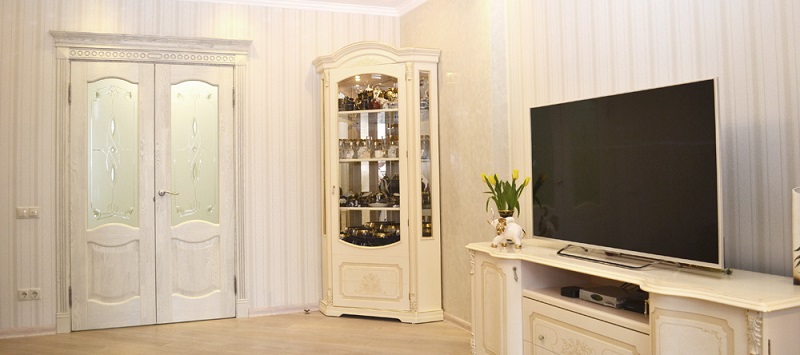 In the interiors, decorated in modern, vintage or classic style, you can set the same in size and shade door leaf, having asymmetrical abstract glass inserts or door leafs with a mirrored pattern layout. It is interesting to look at such rooms in the tsargovye doors from an array or MDF, having as a decoration thin glass strips embedded between wooden inserts. The so-called “Italian” compact doors, which also save space due to the peculiarities of their design, will look stylish and fresh.